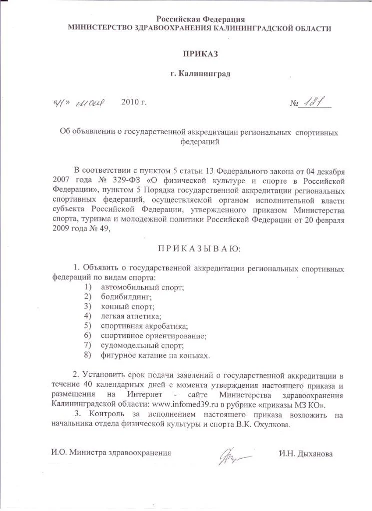 Об объявлении государственной аккредитации региональных спортивных федераций | 41.92 Кб | |