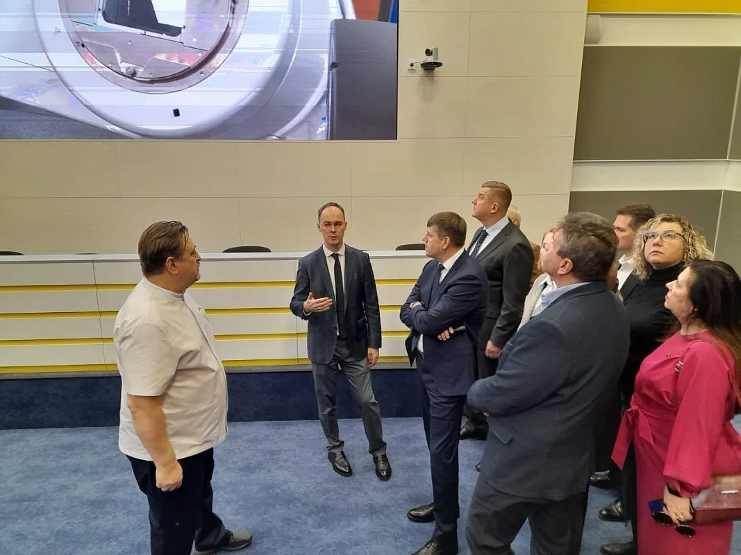 Посетителями онкоцентра стали 17 депутатов во главе с председателем регионального парламента Андреем Кропоткиным. Экскурсию по клинике для них провели министр здравоохранения и руководитель медицинской организации Кирилл Баринов.