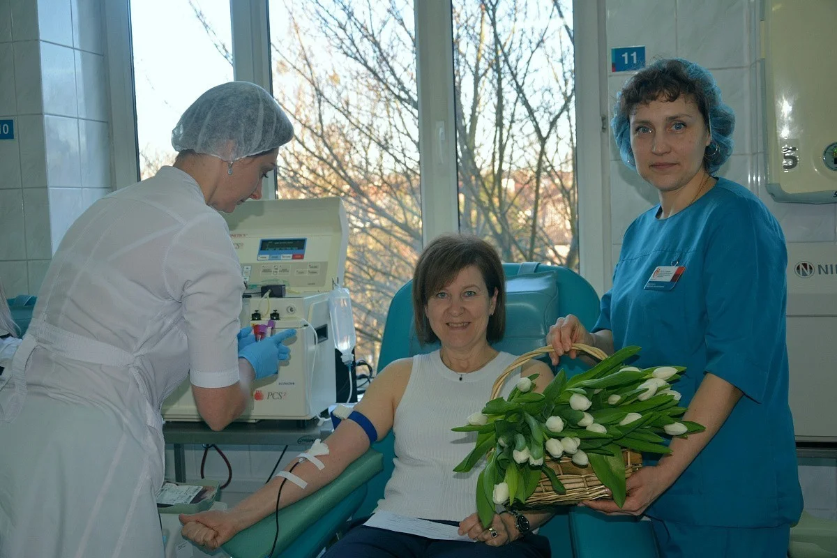 На Станции переливания крови Калининградской области каждая женщина-донор после донации получила не только цветы и конфеты, но и слова благодарности от сотрудников учреждения и руководителя регионального министерства образования Светланы Трусеневой – активного донора с многолетним стажем.